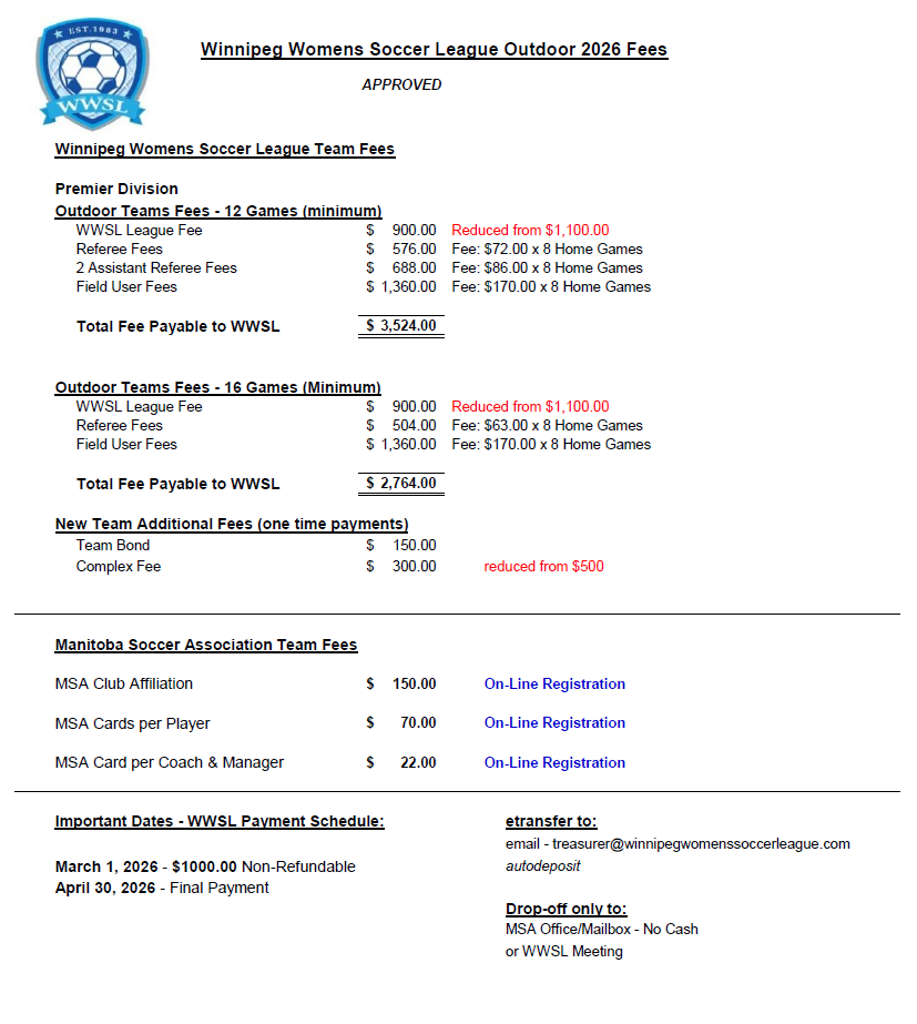 *Note this is preliminary registration - full registration is done through the MSA Registration system. WWSL will advise when that is open